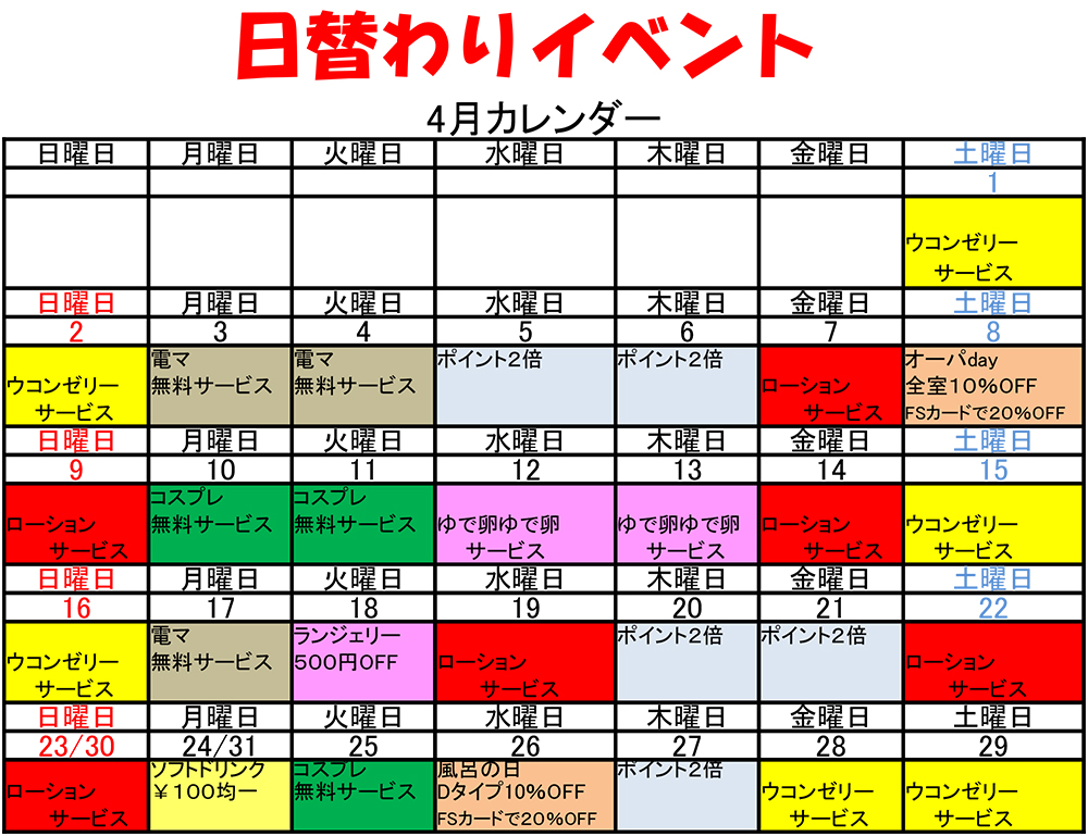 4月の日替わりイベント