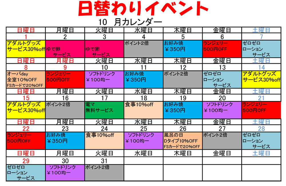 10月の日替わりイベント