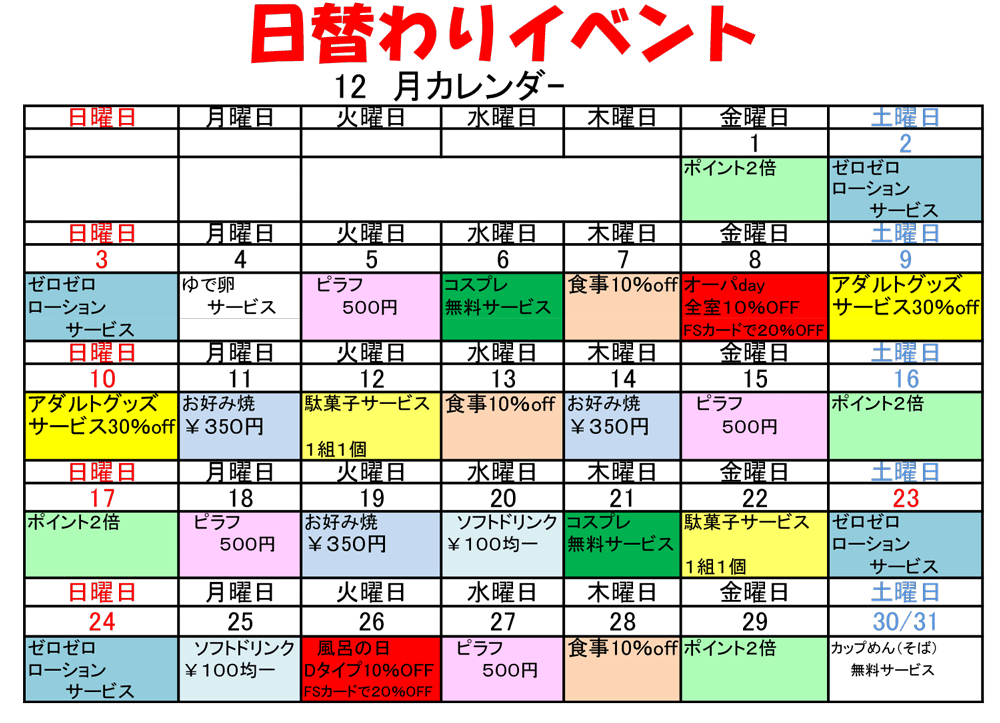 12月の日替わりイベント