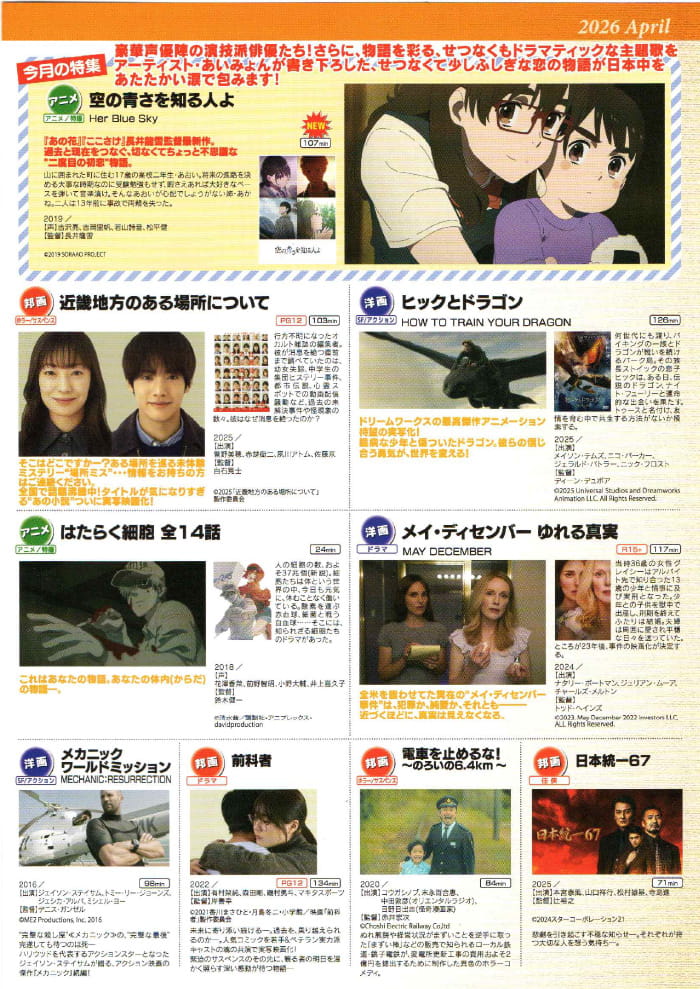 - 2026.03【今月のVOD(ビデオ・オン・デマンド)】4月の新作を更新しました!open
